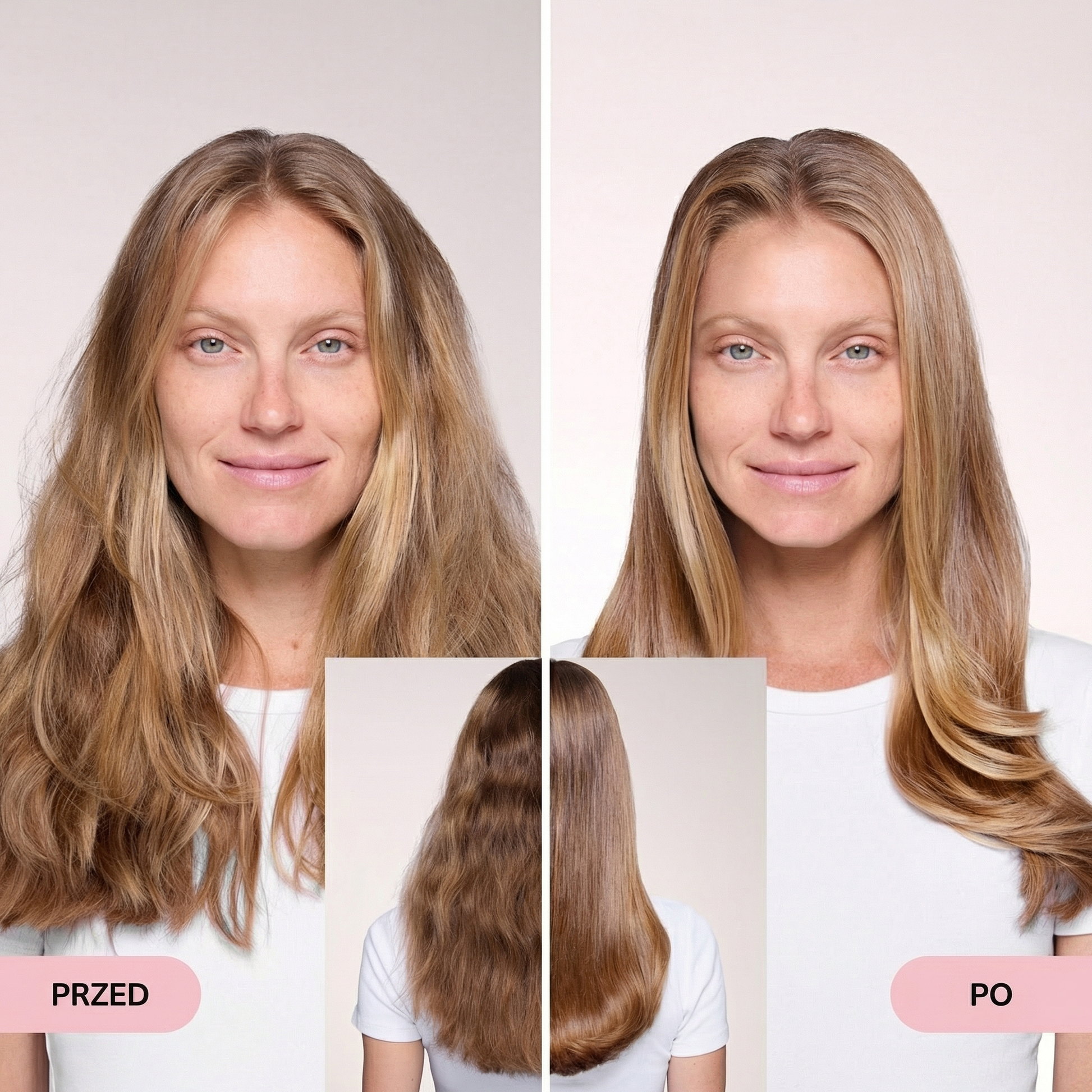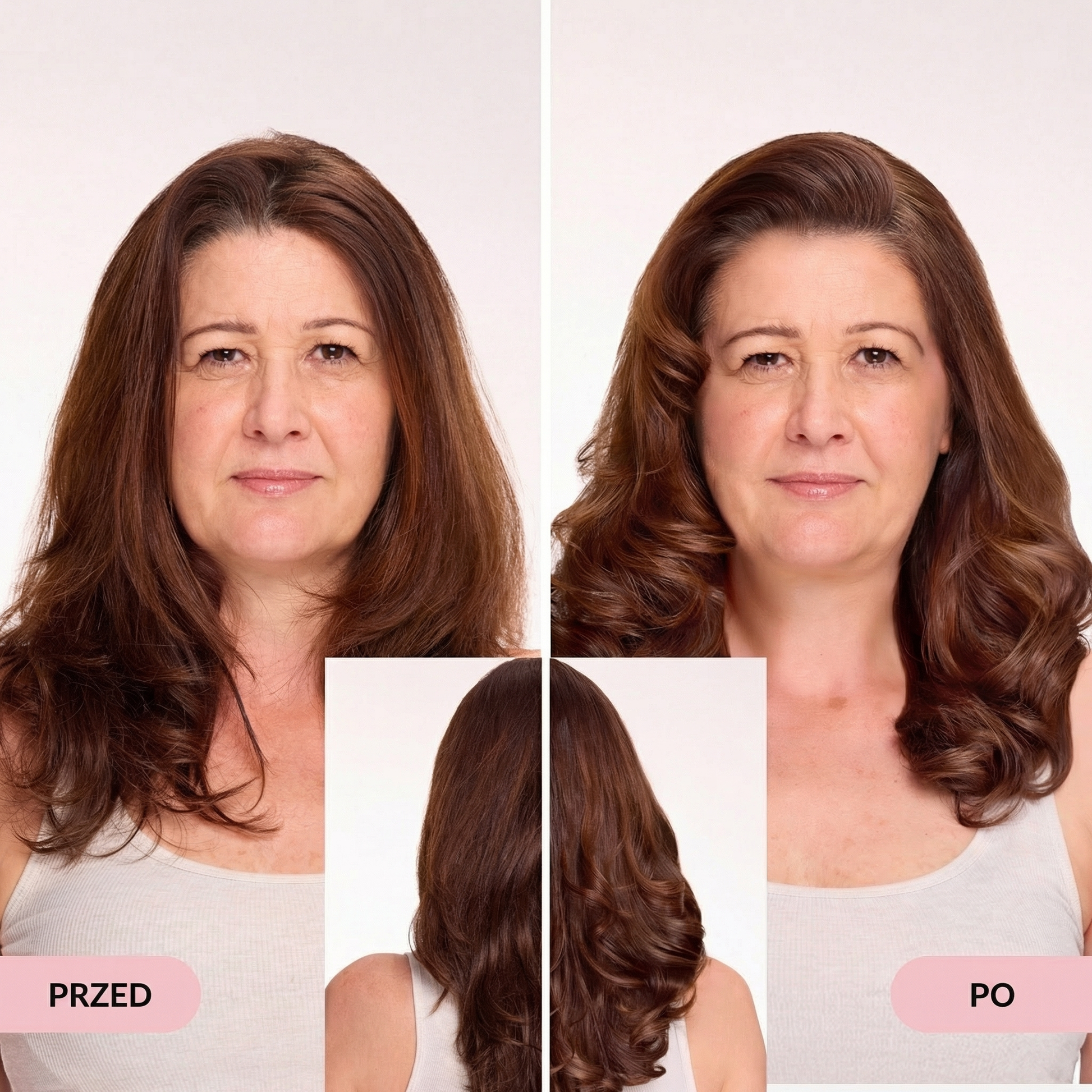 kupowałam z dużym sceptycyzmem. W moim wieku widziałam już tyle cudów, które nie działały... Ale córka nalegała. I wiecie co – ona miała rację. Włosy gładkie, lśniące, bez tego puszenia, które mnie dobijało od lat. Przepraszam córeczko że nie słuchałam wcześniej 😅"