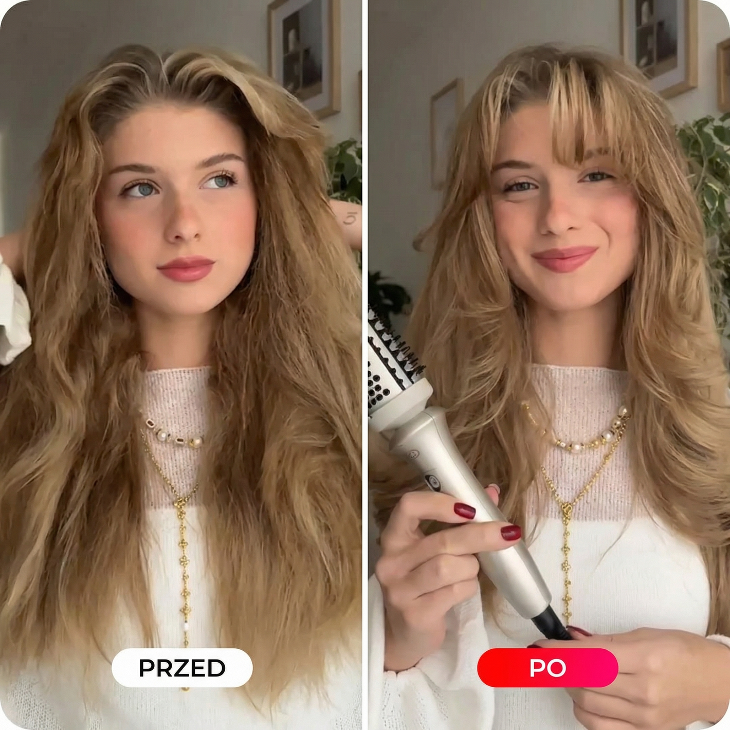 "Wreszcie Koniec z puszeniem 😍Uwielbiam tę szczotkę! Daje efekt profesjonalnego blowoutu i wygładza końcówki!"